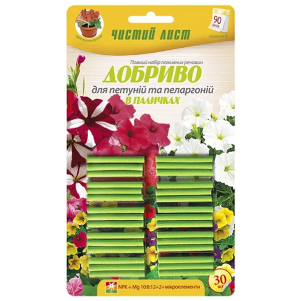 Чистий лист палички для петуній (30 шт) – добрив тривалої дії у вигляді паличок, що дає найкращий результат.