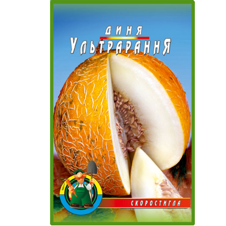 Диня “Ультрарання “. Сорт ранньостиглий, урожай (до 2 кг з 1 кв.м). Вегетаційний період 75-80 днів. Плоди гарного товарного вигляду, округло-овальні, великі, жовті, в сітці. М’якоть біла, товста, розсипчасто-щільна, ніжна, солодка, доброго смаку. Транспортабельний. Рекомендований для отримання ранньої продукції через розсаду і захищений грунт.