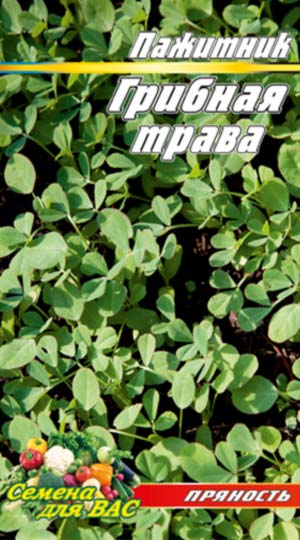Пажитник Грибная трава   (семена). Грибная трава или пажитник – это пряное растение с неповторимым грибным ароматом, используется как приправа к супам, борщам, соусам, и другим блюдам. Ценится она за приятный грибной вкус.