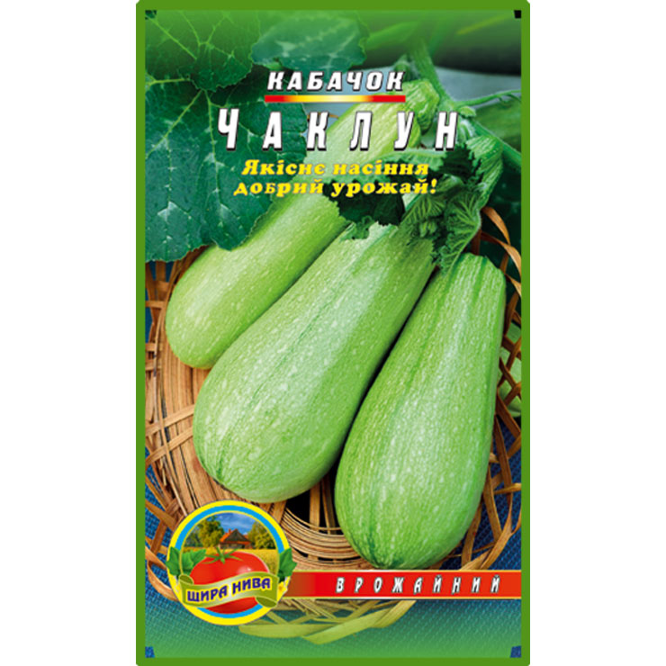 Кабачок “Чаклун” Ранньостиглий сорт з тривалим періодом плодоношення . Вегетаційний період від сходів до технічної стиглості 40-45 днів. Рослини кущової типу. Плоди циліндричної форми, світло-зеленого забарвлення, довжиною 15-20 см, масою 400-600 г. М’якуш ніжний, соковитий, біло-кремового кольору. Сорт відносно стійкий до хвороб. Використовують в кулінарії для приготування овочевих страв, консервування та соління. Стандартна схема посадки овочевої культури цього сорту становить 40 × 50 см. Сорт придатний для вирощування, як у відкритому, так і в захищеному грунті.
