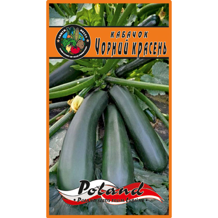 Кабачок “Чорний красень”. Цей сорт відноситься до кабачків цукіні – кущоевого різновиду цього овоча. Кущі – середні за розміром з досить великими яскраво-смарагдовими листями. Урожай з цього сорту можна збирати вже через півтора місяці після висадки насіннєвого матеріалу. З одного куща збирають не менше 5-7 плодів.