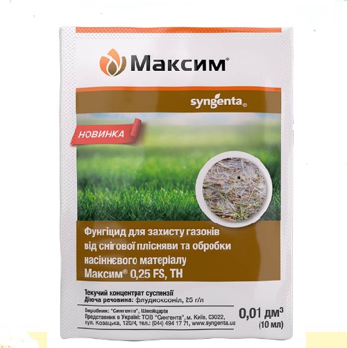 Фунгіцидний протруйник Максим стане в нагоді тим, хто має газон. Завдяки унікальним можливостям препарат широко використовується для весняної обробки газонної трави від снігової плісняви, а також осінньої консервації футбольних і гольфових полів.