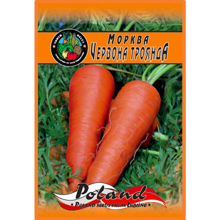 Морква “Червона троянда”. Один з найвідоміших довгоплідних сортів середньо-пізнього строку дозрівання. Форма коренеплоду злегка конічна, довжиною 25-27 см. Прекрасне темно-помаранчеве зовнішнє і внутрішнє забарвлення. Цінність сорту: Висока врожайність, відмінний смак і стійкість до хвороб. Висока ефективність вирощування забезпечується підзимовим посівом.