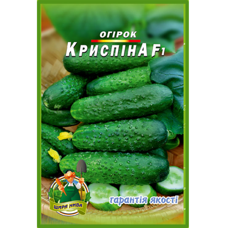 Огірок Кріспіна F1 Надранній, високоврожайний партенокарпічний (самозапильний) гібрид корнішонного типу. Рослина міцна, формує по декілька плодів у одному вузлі. Плоди однорідні за розміром, циліндричної форми, міцні, темно-зелені, не жовтіють, біло шипі, великогорбкуваті, з ніжною шкіркою, відмінними засолювальними якостями,транспортабельні. Стійкий до сухості повітря, вірусу огіркової мозаїки, борошнистої роси справжньої та несправжньої. Ідеальний вибір для отримання гарантованого врожаю в плівкових, скляних теплицях та у відкритому ґрунті.