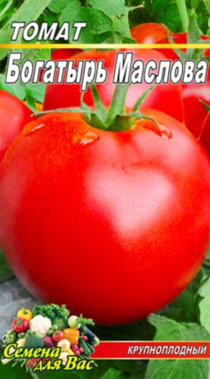 Томат “Богатир” Маслова. Великоплідний сорт середнього терміну дозрівання. Рослина високоросла, вимагає підв’язки. З великими плодами округлої форми, яскраво-червоного кольору. Смакові якості відмінні. Один з кращих сортів для вживання в свіжому вигляді і для переробки на томатопродукти.