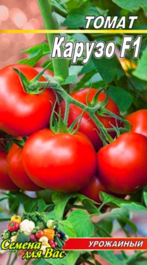 Томат “Карузо F1”. Новий високопродуктивний середньо-ранній гібрид кистьового типу. Дозріває на 122 день після сходів. Рослина має середнє стебло. Суцвіття складне, без залома, з 6-7 плодами. Перша кисть розташована над 8-9 листом, наступні через 2-3 листа. Плоди міцні, округлі, темно-червоні, масою 120-130 г, з приємним смаком, зберігають свої товарні якості більше 4 тижнів. Стійкий до хвороб. Гібрид української селекції, виведений в НДІ закритого грунту, агрокомбінат «Пуща-Водиця».