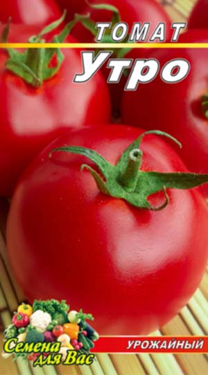 Томат "Утро". Скороспелый, урожайный сорт салатного назначения. Куст и листья обыкновенные. Кисть компактная, с 5—7 плодами, первая закладывается над 5—7-м листом, последующие — через один-два листа. Плоды округлые, ярко-красные, гладкие или слегка ребристые. Средняя масса плода 83—104 г, вкусовые качества хорошие. Устойчив к растрескиванию, транспортабелен, относительно устойчив к септориозу листьев.