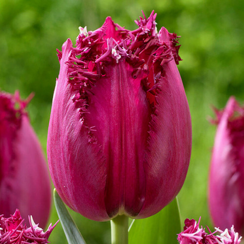 Бахромчаті тюльпани (Tulipa crispa, Tulipa fringed) – клас, який зібрав в себе сорти тюльпанів різного походження, об’єднані одною  головною ознакою, ігольчаста бахрома по краям пелюсток, що нагадує іній. Висота бахромчатих тюльпанів може варіюватися від 50 до 80 см. Забарвлення квіток зустрічається найрізноманітніше: від білого до фіолетового до темно-шоколадного. Залежно від того, які класи тюльпанів використовувалися при виведенні того чи іншого сорту – бахромчаті тюльпани, розрізняються за розміром квітки, термінами цвітіння і призначенням рослин. Тюльпан Мадженто (Tulip Magento)